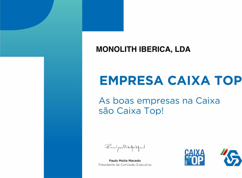 A Monolith Iberica tem o prazer de anunciar que foi distinguida com o diploma «Caixa Top 2024», um reconhecimento que confirma a solidez, fiabilidade e o elevado profissionalismo da empresa.
